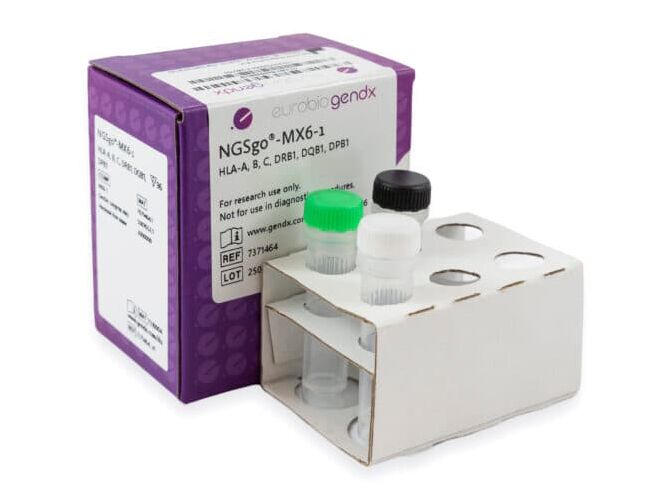 NGSgo-MX6-1 enthält sechs Loci in einem Röhrchen für die Amplifikation von HLA-A, -B, -C, -DRB1, -DQB1 und -DPB1. Eine gebrauchsfertige PCR-Mastermischung (GenDx-LongMix) ist im Kit enthalten. Ein-Tages-Workflow: NGSgo-MX6-1 ermöglicht die Durchführung einer 6-Loci-HLA-Typisierung innerhalb von 24 Stunden (10 Proben auf Illumina MiSeq Nano Fließzelle). Dies schließt Datenanalyse und Bericht ein. Kompatibel mit Illumina und PacBio Sequenziersystemen. Erhältlich als RUO, CE-gekennzeichnetes IVD (IVDR) und Health Canada IVD.