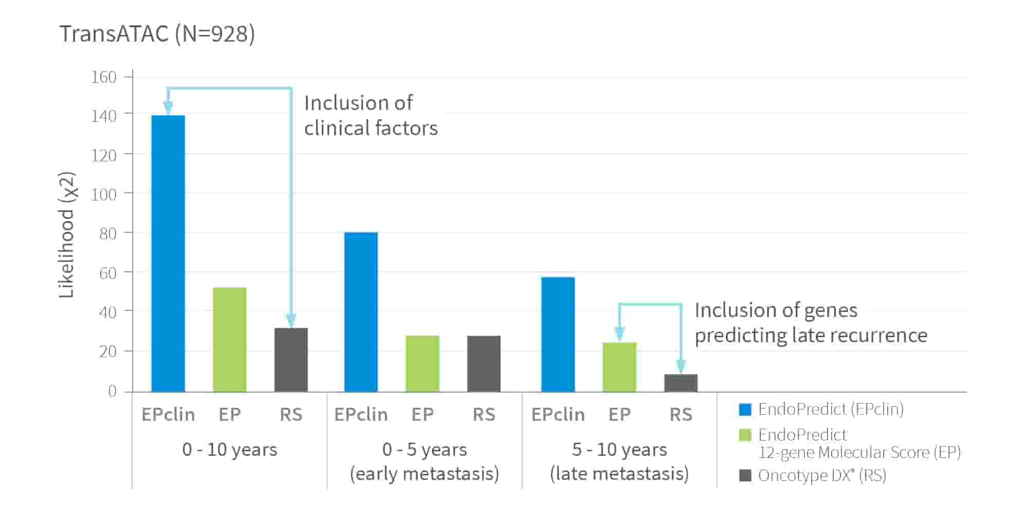 In the TransATAC study, EndoPredict outperformed the leading first-generation test in predicting recurrence risk independent from cut-off values. This ensures greater confidence in identifying patients who may benefit from chemotherapy.
