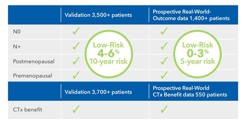 - Both validation studies and prospective real-world data confirm its ability to predict chemotherapy benefit, offering valuable insights to guide treatment decisions and improve patient outcomes.
