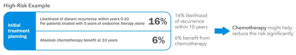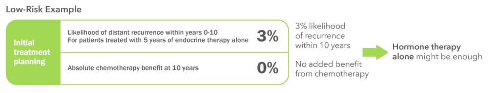 EndoPredict shows your personal risk of breast cancer returning within the next 10 years if you receive 5 years of hormone therapy alone.1 It also helps estimate how much additional benefit chemotherapy might offer to you.2 ​Since recurrence can still happen after chemotherapy, the test supports you and your doctor in weighing its potential benefit against possible side effects.​