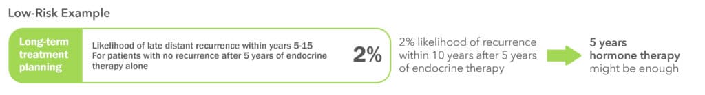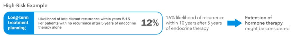 EndoPredict shows your individual risk of breast cancer returning in the 10 years after completing 5 years of hormone therapy.3 This helps you and your doctor decide whether 5 years of treatment might be enough or if extended hormone therapy may be needed.​