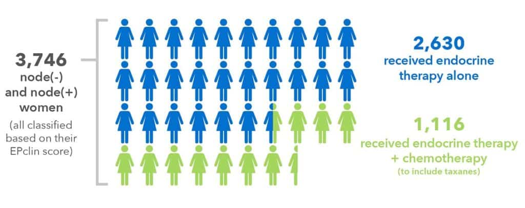- 2 630 patientes ont reçu un traitement endocrinien seul pendant 5 ans et 1 116 patientes ont reçu un traitement endocrinien associé à une chimiothérapie selon les schémas thérapeutiques actuels (contenant des taxanes et/ou des anthracyclines).